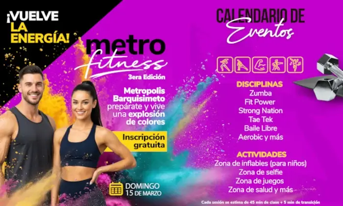 El próximo domingo 15 de marzo, las inmediaciones del Centro Comercial Metropolis Barquisimeto se convertirán en el epicentro del bienestar con la tercera edición del Metrofitness 2026. Este evento gratuito