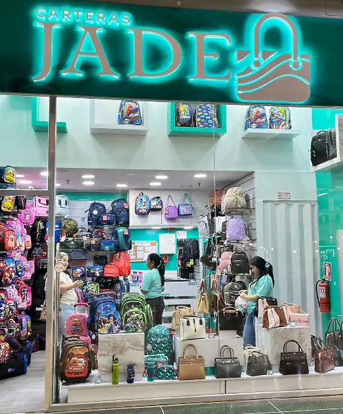 Vitrina de la tienda de carteras y bolsos Jade en Metropolis BarquisimetoCarteras Jade04125639027carterasjade24107AGUAModaEn Carteras Jade encuentras el accesorio perfecto para cualquier ocasión y estilo. Contamos con una extensa colección de carteras con gran variedad de modelos y colores, bolsos casuales y una línea especial de bolsos para niños.