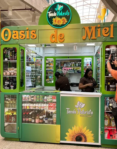 Vista del Kiosko Oasis de Miel, tienda naturista en Metropolis BarquisimetoOasis de Miel04245393886oasisdemielGóndola 03AGUAProductos de bellezaTienda naturista con un amplio surtido de vitaminas, suplementos alimenticios, productos para el control de peso o para el desarrollo muscular.